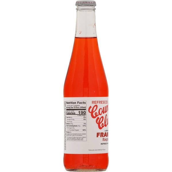 IngredientsTriple Filtered Carbonated Water, High Fructose Corn Syrup, Natural And Artificial Frambuesa Flavor, Citric Acid, Sodium Benzoate (a Preservative), Artificial Color (fd&c Red #40)