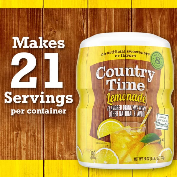 • Country Time Lemonade Powdered Drink Mix helps cool your family down all year