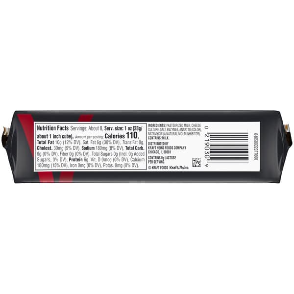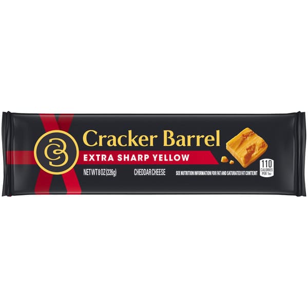 Cracker Barrel Extra Sharp Yellow Cheddar Cheese Block delivers bold, rich cheddar flavor in a versatile format good for slicing, shredding or cubing. An award-winning cheese, this extra sharp cheddar block is easy to slice and serve when you’re entertaining guests. It’s made with real milk for a smooth, creamy texture with 110 calories per serving. Slice a block to serve with sesame crackers, dried cranberry, almonds and Sopresatta, or pair the tasty cheese with dark chocolate and a fine Shiraz after dinner. Each 8 ounce block of cheddar cheese comes wrapped to help maintain flavor in your refrigerator., ● One 8 oz Cracker Barrel Extra Sharp Yellow Cheddar Cheese Block, ● Cracker Barrel Extra Sharp Yellow Cheddar Cheese Block from the award-winning cheese maker, ● Extra sharp cheddar cheese block is perfect for entertaining guests, ● Cheddar cheese block is easy to slice and serve, ● Made with milk for smooth, creamy flavor, ● Slice for cheese platter or melt over mac and cheese, ● Rich flavored cheese contains 110 calories per serving