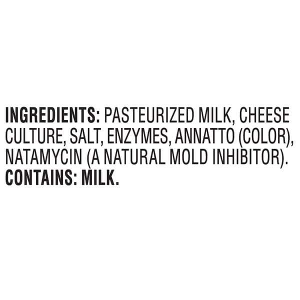 Cheddar Cheese (pasteurized Nonfat Milk And Milkfat, Cheese Culture, Salt, Enzymes, Annatto [color]), Natamycin (a Natural Mold Inhibitor)