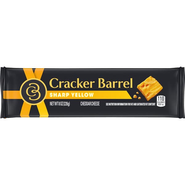 Cracker Barrel Sharp Yellow Cheddar Cheese Block is smooth and creamy, providing a perfectly balanced flavor that tempts your taste buds. With a distinctive taste, this sharp cheddar cheese block makes a great addition to any cheese platter, served alongside pineapple, pistachios and Serrano ham to keep your guests nibbling happily. Delight your friends on wine and cheese night, or grate this extra sharp cheese over salad or pasta to add a rich and delicious cheese flavor. This sharp cheddar cheese contains 110 calories per serving. Each wrapped package contains one 8 ounce block of cheese for easy slicing., ● One 8 oz Cracker Barrel Sharp Yellow Cheddar Cheese Block, ● Cracker Barrel Sharp Yellow Cheddar Cheese Block offers smooth, creamy consistency, ● Cheddar cheese with sharp flavor that’s perfectly balanced, ● Chunk of cheese is ideal for slicing and serving, ● Smooth cheese contains 110 calories per serving, ● Perfect for snacking or entertaining with family and friends, ● Wrapped cheese block contains 8 servings