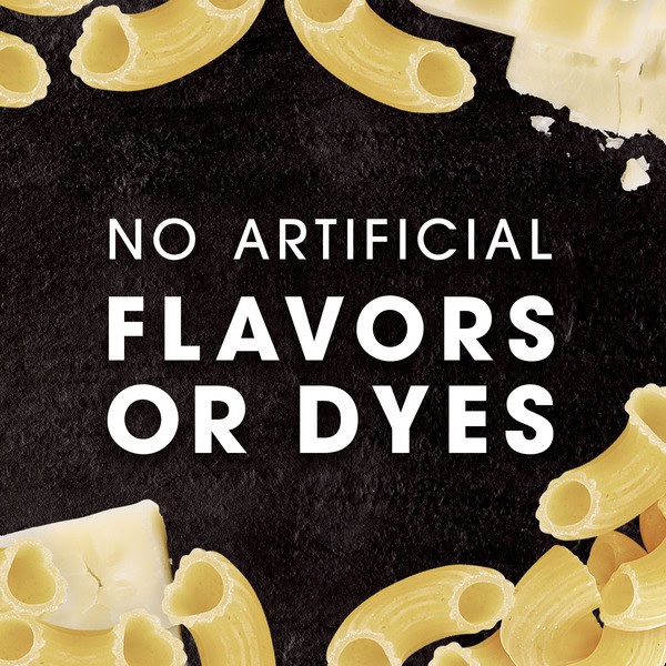 • There are no artificial flavors or dyes in our delectable macaroni and cheese