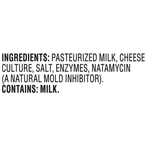 Pasteurized Milk, Cheese Culture, Salt, Enzymes, Natamycin (a Natural Mold Inhibitor).