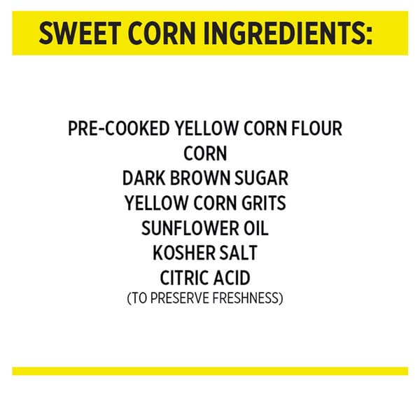 Pre-cooked Yellow Corn Flour, Corn, Dark Brown Sugar, Yellow Corn Meal, Sunflower Oil, Kosher Salt, Citric Acid To Preserve Freshness.