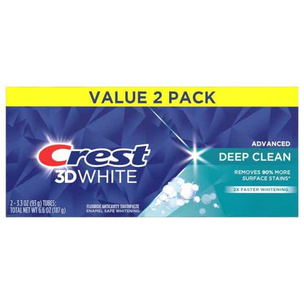 • You will receive two (2) 3.3 oz tubes of Crest 3DWhite Advanced Deep Clean Toothpaste