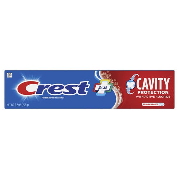 Crest Plus Cavity Protection Toothpaste gives you a cavity treatment that helps take care of your mouth by protecting your teeth and exposed roots. Regular brushing can help protect your teeth and strengthen weak spots to help fight cavities. Plus, it’ll leave your breath feeling fresh.