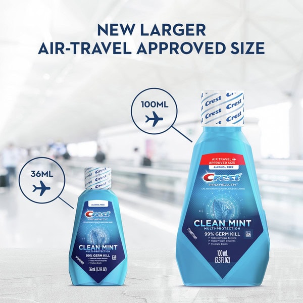 • You will receive (1) 100mL (3.3 fl oz) Travel Size bottle of Crest Pro-Health Multi-Protection mouthwash in Clean Mint flavor