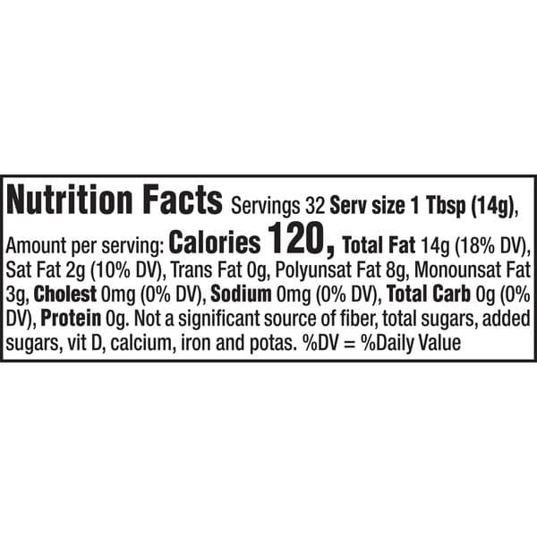 Made from soybeans, with a light taste that lets the flavor of your food shine through. A cholesterol-free food and has 0g trans fat per serving.