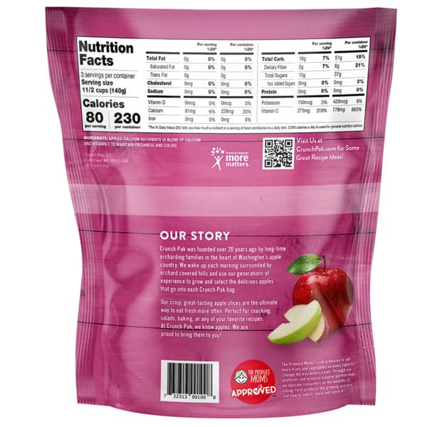 Looking for Healthy convenience? It’s in the bag! Healthy Crunch Pak family sized 14oz bag of mixed sweet & tart Sliced Apples provides an optimal choice for on-the-go, between meals, lunchtime, or anytime during the day snack!
