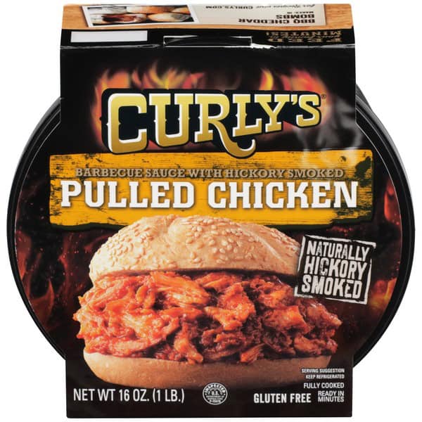 Curly’s Naturally Hickory Smoked Pulled Chicken With Barbecue Sauce serves up authentic restaurant quality from the convenience of your kitchen. This gluten free barbecue chicken contains no added fillers for a delicious, wholesome meal that goes from the fridge to your table in minutes. Curly’s pulled BBQ chicken is naturally hickory smoked for hours to give it a rich flavor, and the sauce creates a smoky BBQ taste everyone can enjoy. The microwavable container lets you easily heat and serve the pulled chicken, and it’s resealable to keep any leftovers fresh in the refrigerator.