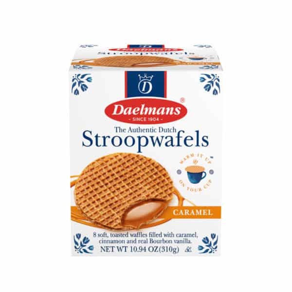 Since 1904. The Authentic Dutch. Warm it up on your cup. Enjoy a Dutch classic. Bite into a Daelmans stroopwafel, and you’ll see why this Dutch classic is now a worldwide favorite! Ever since we opened our family bakery in 1904, our commitment to quality has remained the key ingredient in every stroopwafel we bake. Each stroopwafel is crafted from freshly made dough, pressed in a waffle iron until golden brown, and filled with mouthwatering caramel. Warm it up n your cup! Our favorite way to enjoy a Daelmans stroopwafel is to warm it up over a steaming hot cup of coffee or tea. Simply rest the stroopwafel on top of your cup, and in about two minutes, it will transform into a gooey, irresistible indulgence. The soft, toasted waffle, warm caramel and notes of sweet cinnamon and bourbon vanilla are sure to awaken all of your senses! RSPO: Certified sustainable palm oil.
