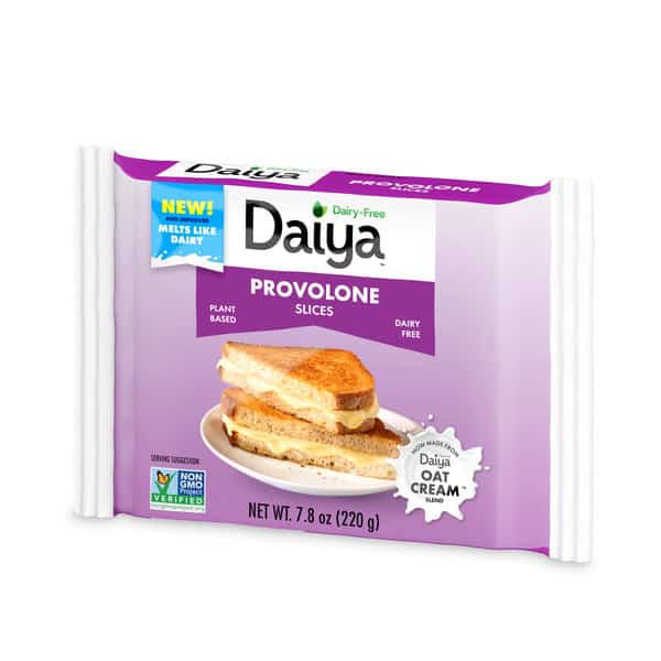 Tangy, buttery, and savory, our dairy free provolone cheese slices are a delicious plant based cheese alternative. Enjoy in a dairy free cheese platter with crackers, grapes, and fresh figs, or add a slice for a gourmet burger. Try it layered with kimchi in a Korean-inspired plant-based grilled cheese.