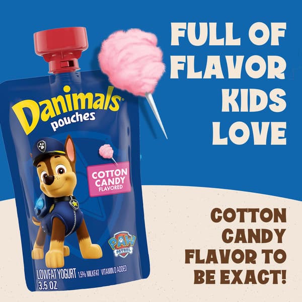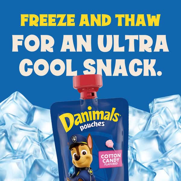 Hop into adventure with Danimals Cotton Candy Pouches. No spoon? No problem. Each squeezable yogurt delivers an explosion of cotton candy flavor on-the-go. With no artificial flavors, high fructose corn syrup or artificial colors, Danimals yogurt pouches easy snacks get high-fives all around. Kids enjoy a neat-o yogurt that’s fun to eat. Parents get a mess-free snack that’s also a good source of calcium and vitamin D. Everyone wins. That’s why Danimals is the #1 kids’ brand in the yogurt aisle.* It’s the missing puzzle piece in their lunch box, the smooth way to serve breakfast, the kids snack that’s easy to say yes to. Stay extra cool with the Bongo switcheroo—move these low fat yogurt pouches to the freezer overnight for lunch boxes in the morning! Let their imaginations run wild with Danimals smoothies and cups in kid-inspired flavors. With Danimals, you’re ready for adventure – anytime, anywhere. *Source: IRI Unify (52 Weeks as of 12/31/21).