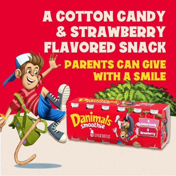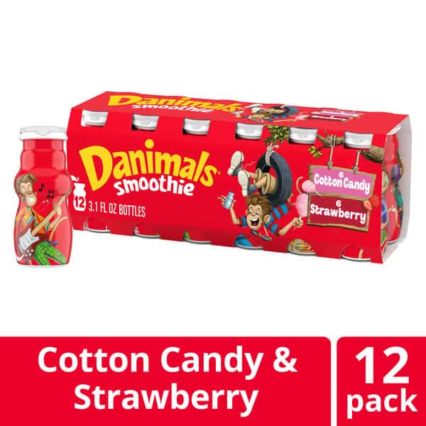• CONVENIENT BOTTLES: Twelve 3.1 oz bottles of Danimals Strawberry Explosion and Cotton Candy Smoothies perfect for on-the-go