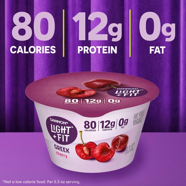 • JUST GRAB YOUR SPOON AND ENJOY: One 5.3 oz Dannon Light + Fit Cherry Greek Fat Free Yogurt Cup – tastes great on its own and even better with your favorite toppings like crunchy granola or fresh fruit