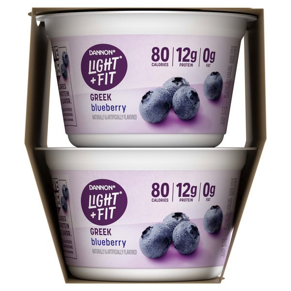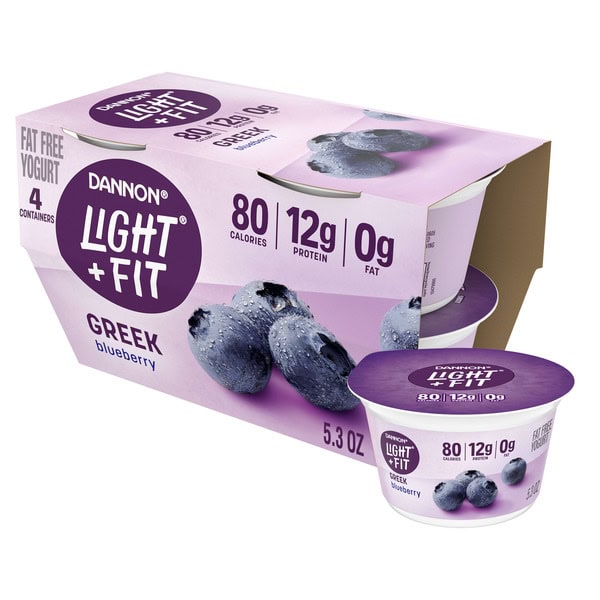 • JUST GRAB YOUR SPOON AND ENJOY: One 4-count pack of 5.3 oz Dannon Light + Fit Blueberry Greek Fat Free Yogurt Cups