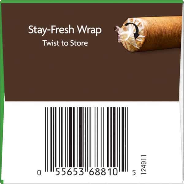 To reclose press in flap. Stay-fresh wrap. Twist to store.