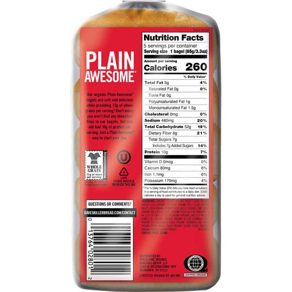 • You’ll get a package of five of Dave’s Killer Bread® Plain Awesome® bagels