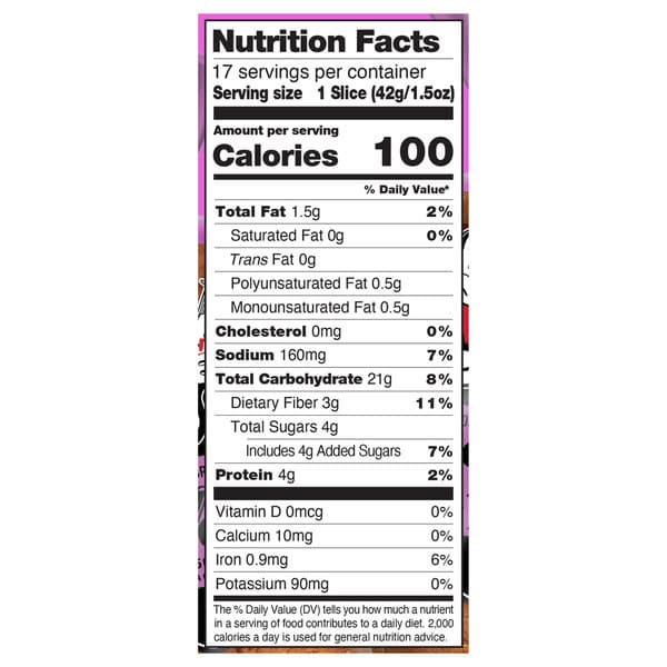 • 25g of whole grains, 4g protein, 3g fiber and 90mg ALA Omega-3 per slice