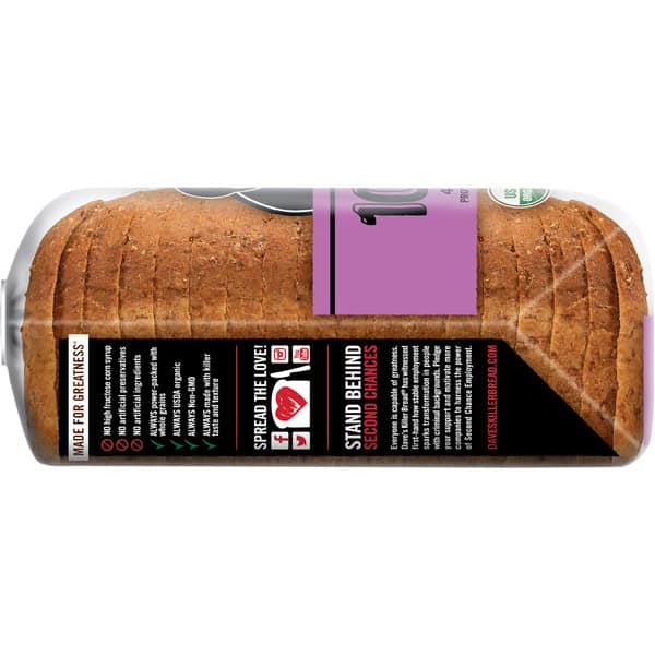 • Dave’s Killer Bread® 100% Whole Wheat sandwich bread gives you a smooth texture and touch of sweetness