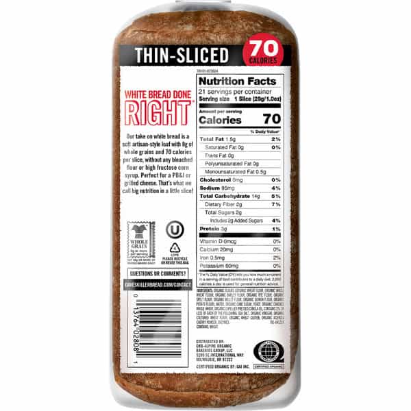 • You’ll get a 20.5 oz loaf of Dave’s Killer Bread® White Bread Done Right® Thin-Sliced