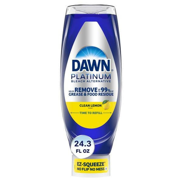 • Dawn Platinum gives you a squeaky clean you can see and feel. Removes up to 99% of Grease and Food Residue