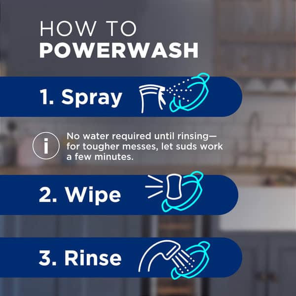 Dawn Powerwash Dish Spray removes 99% of grease and grime in half the time*. Powerwash has 3 cleaning boosters not found in traditional dish soaps that remove food and grease 5X faster*. And because it cleans so well, you can replace multiple cleaning products around your home for counters, stoves, grills, and stains on laundry. Powerwash delivers the power of an overnight soak in minutes. For everyday messes, just spray the suds on and wipe, no water needed until rinsing. For tougher messes, let the suds sit a few minutes before wiping. Save money and reduce waste by reusing your sprayer. Convenient refills available in a variety of scents. *vs. Dawn Non-Concentrated