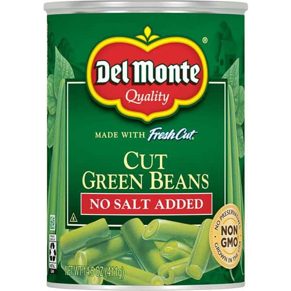 DEL MONTE FRESH CUT BLUE LAKE No Salt Added Cut Green Beans are picked at the peak of freshness and packed within hours for flavor that’s a cut above. These Non-GMO* canned green beans contain no preservatives and no added salt**, letting you season them your way to create delicious vegetable recipes. Use DEL MONTE green beans to create a traditional green bean casserole, add them to soups or stews, or simply serve them as a side with your favorite meal. Each can is easy to store in a pantry or cabinet for easy access whenever you need a delicious side dish in a hurry. Bring the natural goodness of the earth to your dinner table with DEL MONTE FRESH CUT canned vegetables. *Ingredients of the types used in this product are not genetically modified. **Product is not a sodium free food.