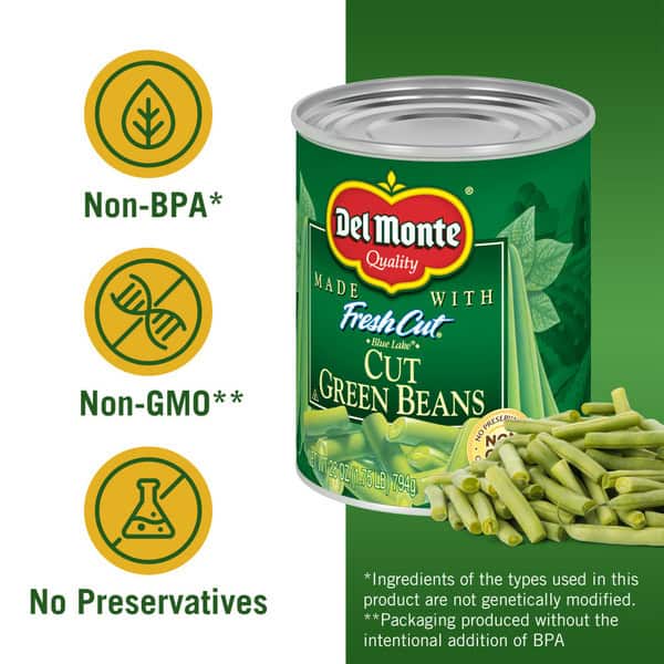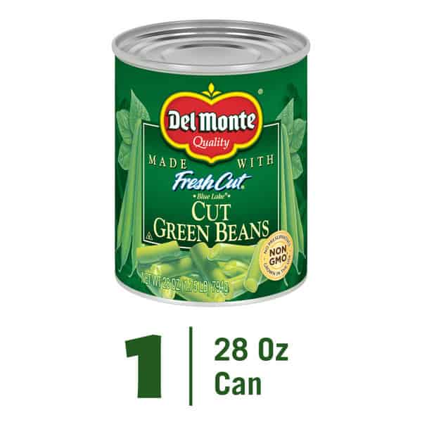 DEL MONTE FRESH CUT BLUE LAKE Cut Green Beans Canned Vegetables make it easy to enjoy high quality greens with your home meals in minutes. Grown in the U.S.A. and harvested at peak freshness, these nutrient dense canned green beans are specially packed to seal in the rich, delicious green bean flavor. With just a hint of natural sea salt, these DEL MONTE green beans are a sweet addition to any vegetable based meal. DEL MONTE canned cut green beans are a simple, ready to eat side dish that goes with any meal, without sacrificing on quality. Effortlessly create green bean casserole for the holidays or serve a side of green beans with your favorite chicken dish using these canned green beans. BLUE LAKE green beans are Non-GMO* and contain no preservatives for an amazing wholesome vegetables taste that complements any homemade dish. Bring the natural goodness of the earth to your dinner table with DEL MONTE BLUE LAKE Canned Green Beans. *Ingredients of the types used in this product are not genetically modified.