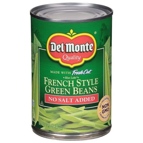 DEL MONTE FRESH CUT BLUE LAKE No Salt Added French Style Green Beans are picked at the peak of freshness and packed within hours for flavor that’s a cut above. These Non-GMO* canned green beans contain no preservatives and no added salt**, letting you season them your way to create delicious vegetable recipes. Try tossing these finely sliced DEL MONTE green beans with pasta and other wholesome vegetables, like squash and cherry tomatoes, for a colorful and delicious meal. These canned French style green beans also make an elegant side dish all on their own. Each can is easy to store in a pantry or cabinet for easy access whenever you need delicious vegetables in a hurry. Bring the natural goodness of the earth to your dinner table with DEL MONTE FRESH CUT canned vegetables. *Ingredients of the types used in this product are not genetically modified. **Product is not a sodium free food.