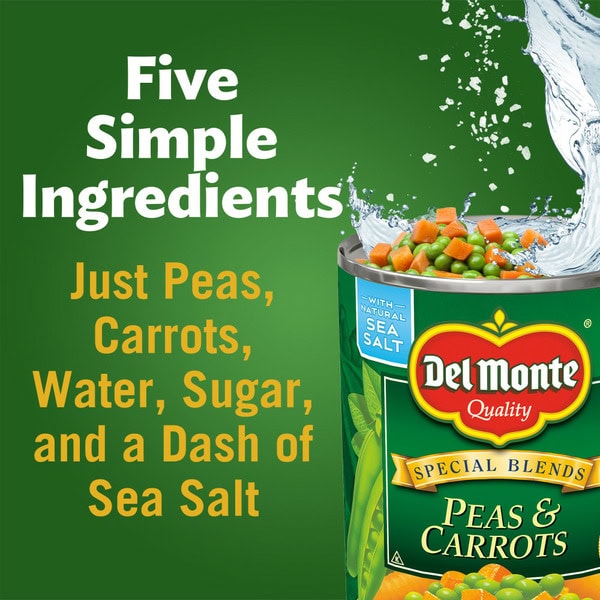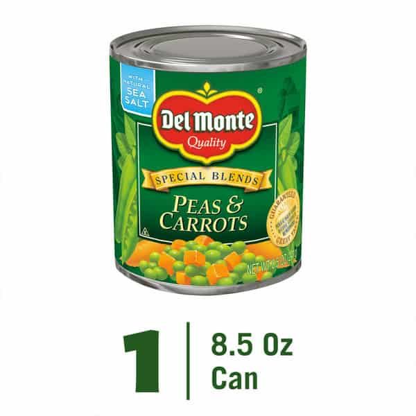DEL MONTE SPECIAL BLENDS Peas & Carrots are sweet and delicious for a quick, easy side dish. Picked at the peak of freshness to lock in nutrition and a distinctively sweet taste, these DEL MONTE mixed vegetables invite you to savor every fresh, crisp bite. These DEL MONTE canned vegetables are Non-GMO* with no artificial additives or preservatives. Delicious on their own, these can peas and carrots are also great in your favorite recipes. Add the can mixed vegetables to soups or casseroles. Simply heat and serve these canned mixed vegetables for a quick side dish that’s ready in minutes. The can keeps this vegetable blend tasting fresh and easy to store. Bring the wholesome goodness of the earth to your dinner table with DEL MONTE Peas and Carrots. *Ingredients of the types used in this product are not genetically modified.