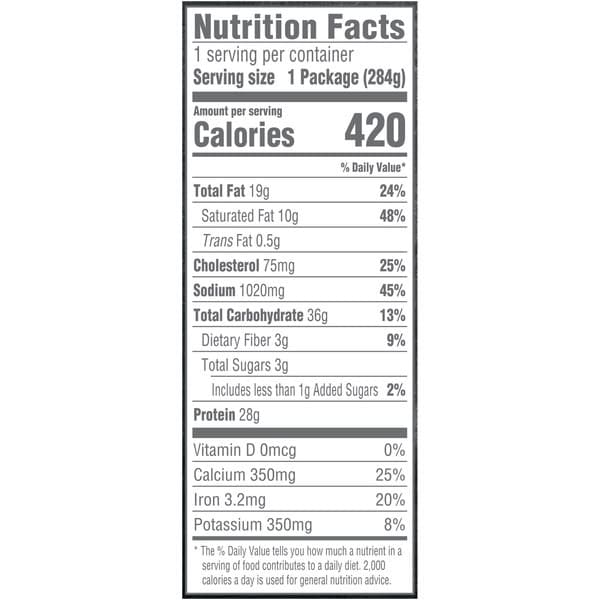 • Convenient frozen dinner stores easily in your freezer until your craving hits