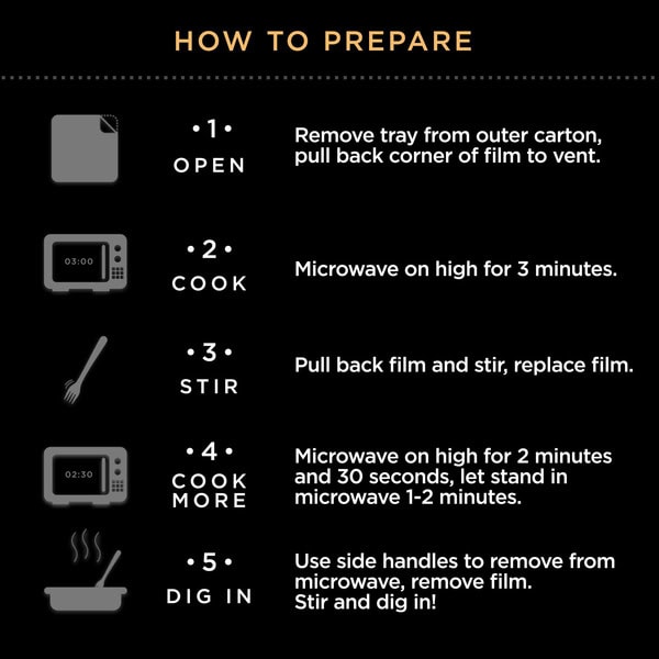 When Removing From Microwave, Hold Onto The Tray’S Side Handles. Remove Film. Stir And Enjoy.