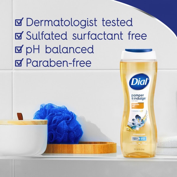 New from Dial! Pamper & Indulge Marula Oil body wash. Delight your senses with a decadent marula oil-infused experience. Dial® HYDRACLEAN Complex™ feels deeply cleansing while being gentle on your skin, leaving it feeling soft & healthy. Dermatologist tested & approved under the Leaping Bunny cruelty free program. This package contains 16 fluid ounces of Dial body wash.