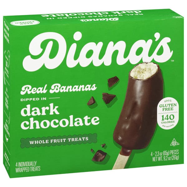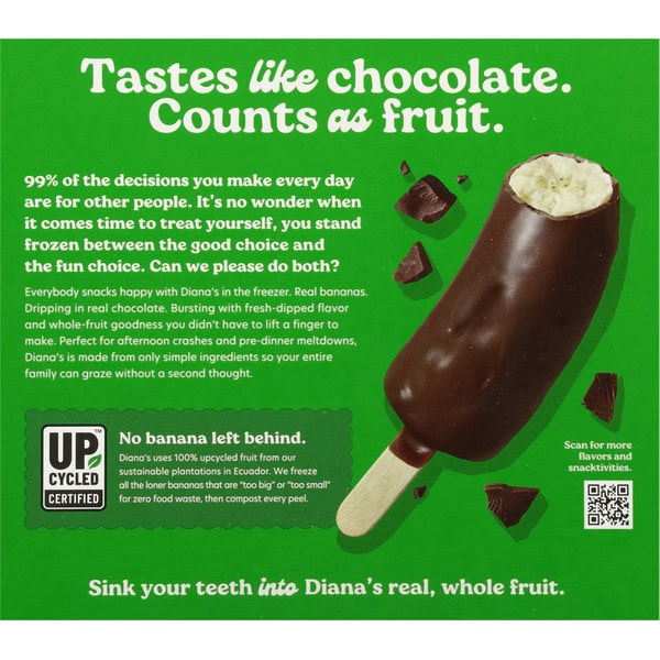 ABOUT DIANA’S. Diana’s pioneered frozen chocolate covered fruit before the internet was a thing and is the first frozen snack to be Certified Upcycled with a devotion to sustainable food creations. With a commitment to make better-for-you, gluten-free snacking convenient and easy, Diana’s carefully curates premium real food ingredients to create flavor and texture combinations everyone can love.
