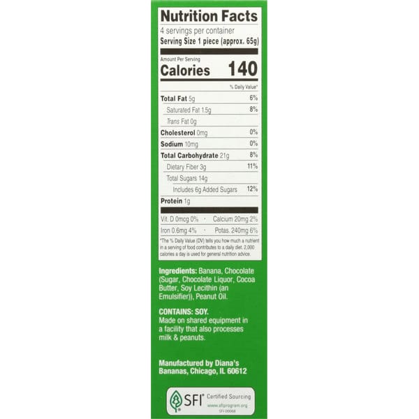 Banana, Chocolate (sugar, Chocolate Liquor, Cocoa Butter, Soy Lecithin (an Emulsifier)), Peanut Oil