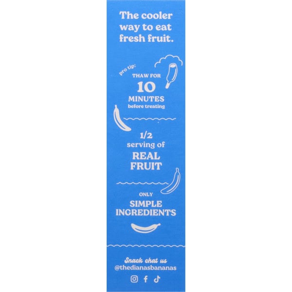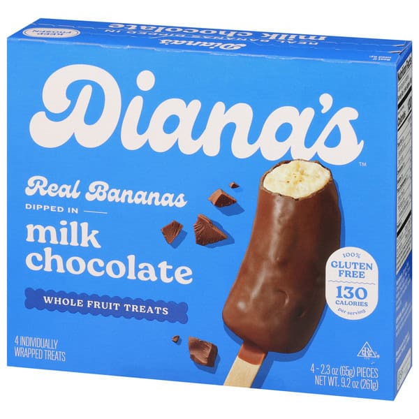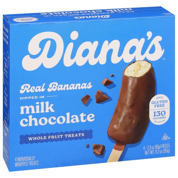 OUR PROCESS IS YOUR JOY. We flash freeze our premium bananas at their perfect sweetness, and wrap in thick layers of real, premium chocolate carefully selected by our chocolate experts for a rich taste, creaminess, smoothness, and nutritional quality. A sweet, indulgent, and gluten-free chocolate frozen fruit snack, Diana’s is a natural real food alternative to ice cream cones, ice cream bites, ice cream bars, dessert bars, fruit bars and popsicles.