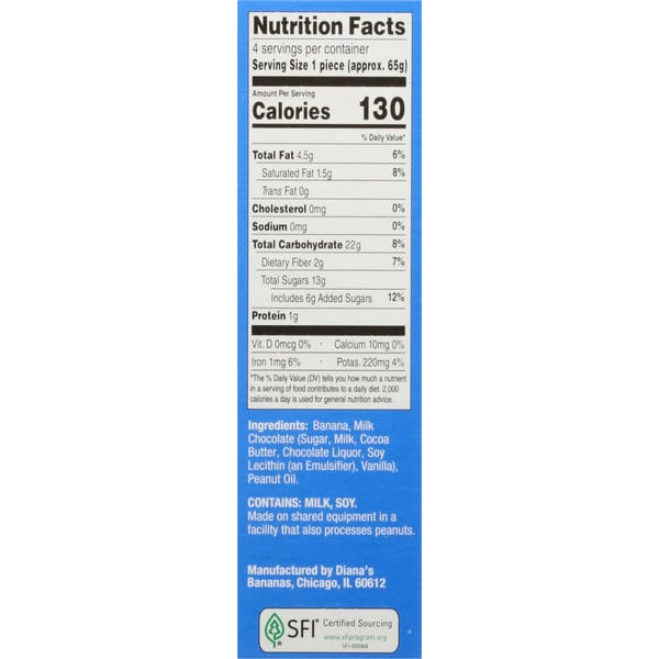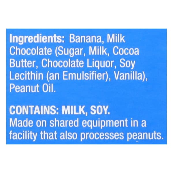 Banana, Chocolate (sugar, Milk, Cocoa Butter, Chocolate Liquor, Soy Lecithin (an Emulsifier), Vanilla), Peanut Oil