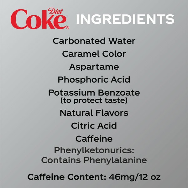 Carbonated Water, Caramel Color, Aspartame, Phosphoric Acid, Potassium Benzoate (to Protect Taste), Natural Flavors, Citric Acid, Caffeine