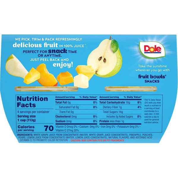 Experience the yummy taste of Dole Mixed Fruit in 100% Juice – a snack that is both convenient and delicious. The mixed fruit is perfectly cut into bite-sized chunks and packed in 100% juice. Eat Dole Fruit Bowls Snacks as a pick-me-up at home or pack in the lunch box for school or work. They’re also an excellent source of Vitamin C, making them a great choice for everyone in the family. Try Dole Fruit Bowls Snacks refrigerated for a tasty chilled snack!