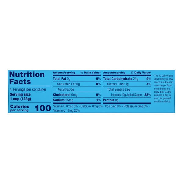 Experience the delicious taste of Mixed Fruit in Black Cherry Gel a snack that is both convenient and delicious. The fruit is perfectly cut into bite-sized chunks and packed in sweet, fruit-flavored gel. Enjoy Dole Fruit Bowls Snacks as a pick-me-up at home or pack in the lunch box for school or work. Try Dole Fruit Bowls Snacks refrigerated for a tasty chilled snack! Dole Packaged Foods, LLC, is a world leader in growing, sourcing, distributing, and marketing fruit and healthy snacks in four core categories: Beverage, Snacks, Frozen, and Pantry. As a purpose-driven company, Dole has 3 areas of focus: increasing access to good food globally and reducing sugar, reducing carbon emissions and organic waste in our operations, and creating shared value amongst all stakeholders.
