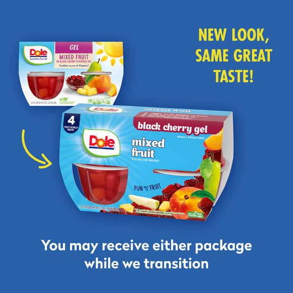 • DOLE® FRUIT BOWLS® Mixed Fruit in Black Cherry Flavored Gel are an excellent source of Vitamin C, gluten free and made from all-natural fruit and non-GMO ingredients.