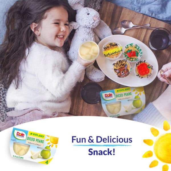 • With DOLE® FRUIT BOWLS® Diced Pears in 100% Juice, you can enjoy the refreshing taste of diced pears anytime of year