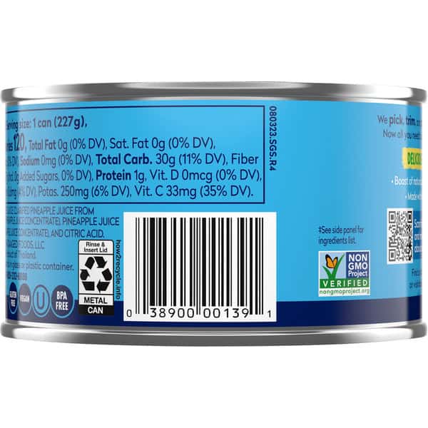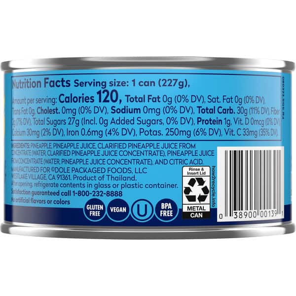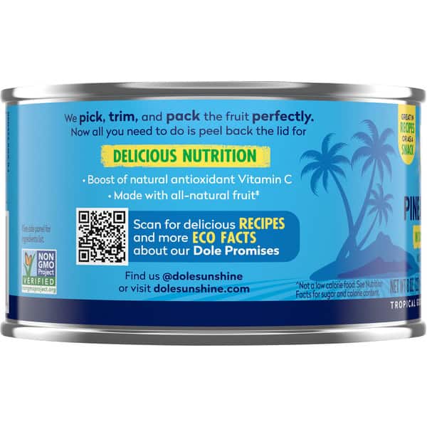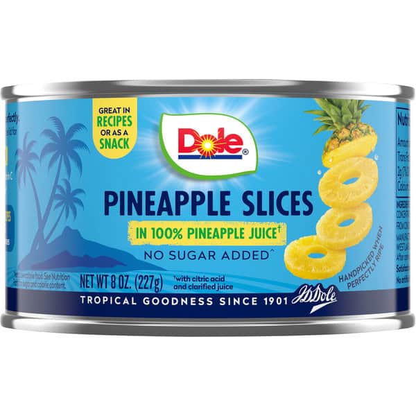 • Dole® Pineapple Slices in 100% Pineapple Juice are filled with all the deliciousness you find in whole pineapple with no added sugar.
