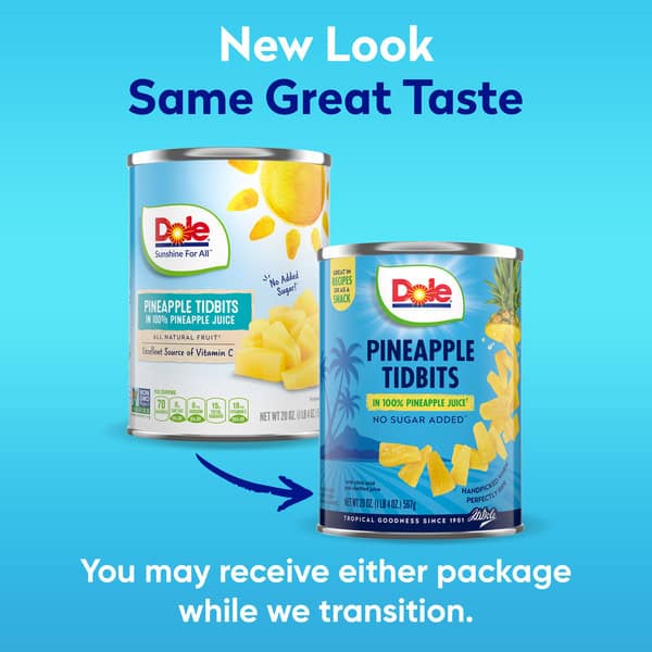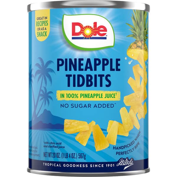 • Dole® Pineapple Tidbits in 100% Pineapple Juice are filled with all the deliciousness you find in whole pineapple, and there is no added sugar