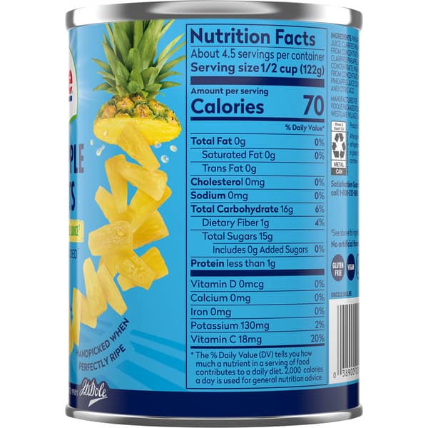 • Dole® Pineapple Tidbits in 100% Juice are gluten free, rich in Vitamin C and made from all-natural fruit and non-GMO ingredients