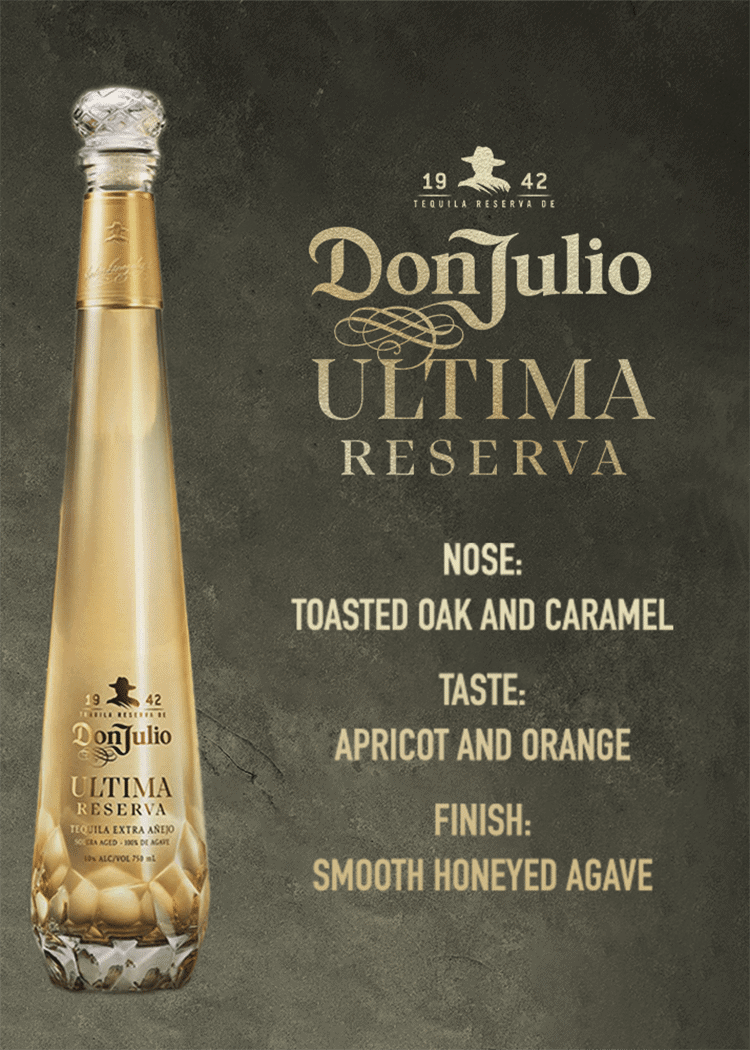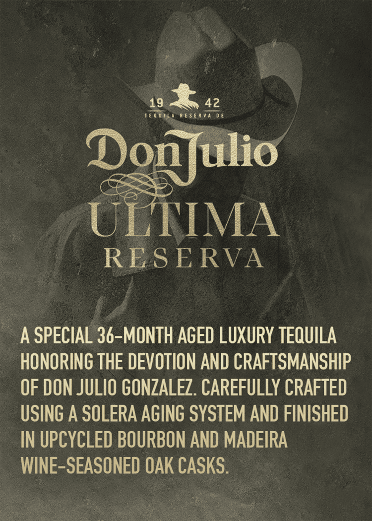 Mexico – 40.0% – A special 36-month aged luxury Extra Anejo Tequila that preserves the final agave harvest planted by Don Julio Gonzalez himself, Don Julio Ultima Reserva Extra Anejo Solero Aged Tequila honors his devotion and craftsmanship.