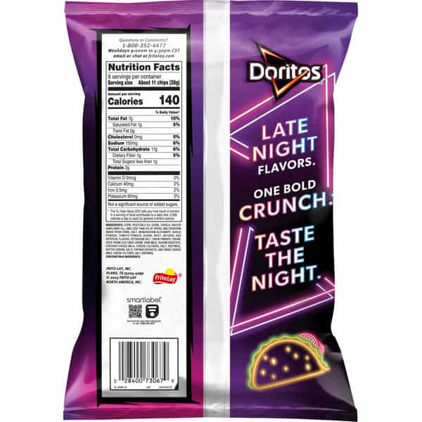 • Includes 1 (9 oz) bag of Doritos Tortilla Chips, Late Night Loaded Taco flavor