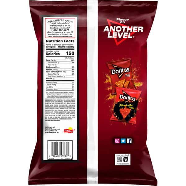 Corn, Vegetable Oil (corn, Canola, Soybean, And/or Sunflower Oil), Corn Maltodextrin, And Less Than 2% Of Salt, Whey, Cheddar Cheese (milk, Cheese Cultures, Salt, Enzymes), Monosodium Glutamate, Corn Starch, Potassium Salt, Onion Powder, Buttermilk, Romano Cheese (cow’s Milk, Cheese Cultures, Salt, Enzymes), Natural And Artificial Flavors, Whey Protein Concentrate, Garlic Powder, Dextrose, Lactos