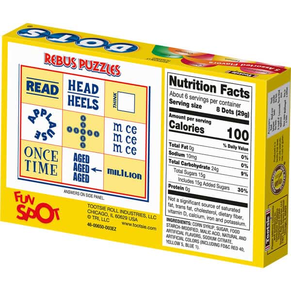 Min. 47 pieces. Product sold by weight not volume. Contents tend to settle after packaging. Get to the dots. Fun spot. Start. Goal. Answer on side panel.